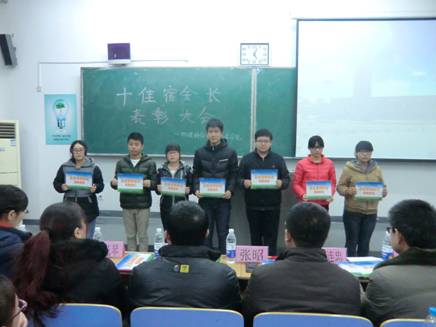会上,学院党委副书记顾连忠宣读卫生文明宿舍,十佳宿舍长以及在阅兵征文和中华魂征文获奖者的名单。启智园4号楼329、321、331 ,8号楼607、615、619等宿舍荣获后宫电影院 “卫生文明宿舍”;纪婷、白杨、王丽杰等十位同学荣获后宫电影院 “十佳宿舍长”。 随后荣获学院“十佳宿舍长”的代表从文化、卫生、学习、纪律等方面进行了宿舍风采展示。