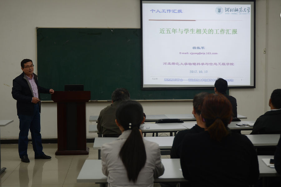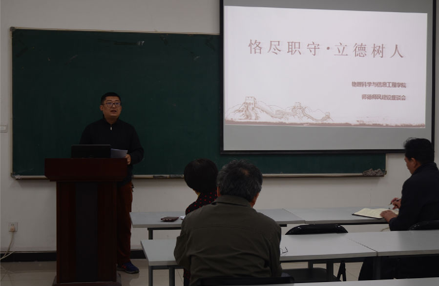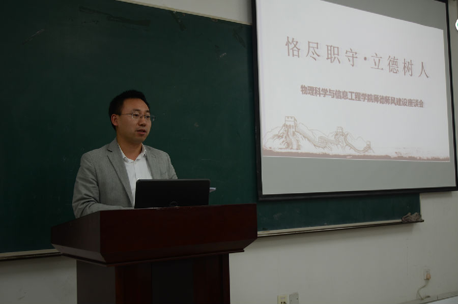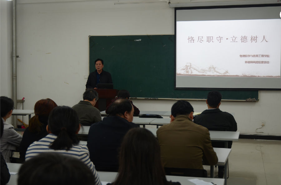10月12日下午,后宫电影院 在理科群2-A302教室召开了以“恪尽职守,立德树人”为主题的师德师风建设报告会。院长张书敏主持报告会,宋俊涛、杨振军、康建波三位教师代表发言,全院教职员工参加了报告会。