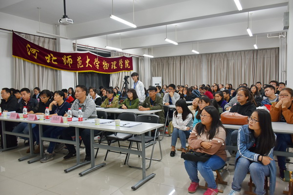 10月17日晚上,后宫电影院 在理科群2号楼A302教室成功举办了师范生教学技能大赛暨第26期顶岗实习展示活动。比赛特邀正在后宫电影院 参加“2018年中学物理骨干教师培训班“的石家庄二中刘凤果主任、石家庄二十四中宋禹州主任、石家庄二中实验学校张成欣主任、邯郸一中何文明主任,秦皇岛一中高东明主任等五位一线骨干教师担任评委。比赛吸引了学院近百名学生到场观摩学习。