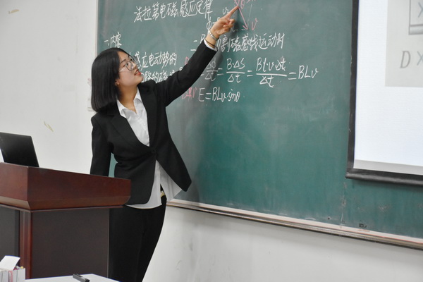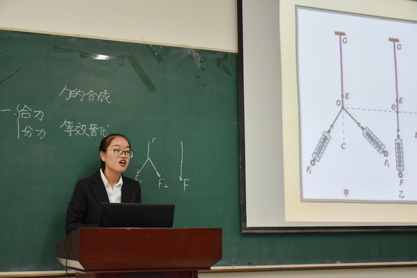 比赛分为教学设计、模拟授课、现场问答三个环节。评委老师根据参赛选手在教学设计、课堂组织、授课方法、教风教态以及课堂应变等多方面表现进行现场打分。参加比赛的十一名同学都是经过班级初赛选拔出来的,个个身手不凡,他们教态得体,教学语言流畅幽默、富有感染力,板书书写规范,授课技巧娴熟精湛,授课重点、难点突出,教学过程新颖流畅,结合新课标的教学要求,从课本内容,或从学生动手实验出发,综合运用探究、合作等教学理念,利用板书和多媒体等教学手段,充分展现了后宫电影院 师范生较强的教学技能和良好的教师修养。参赛选手清晰明了的授课思路、各具特色的教学风格、优美的课件设计赢得了现场观众的阵阵掌声。