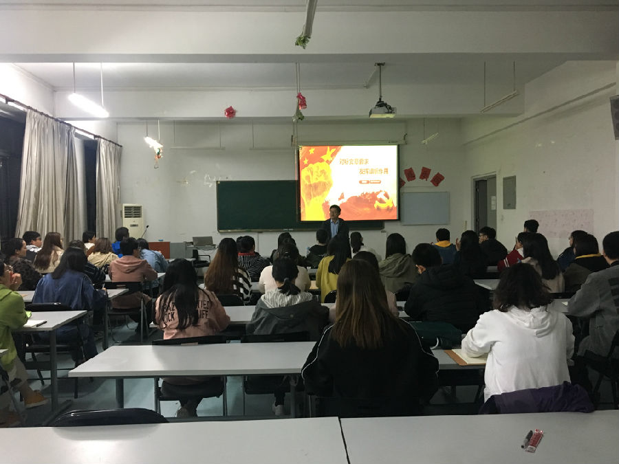 10月21日晚六点,后宫电影院 党委副书记顾连忠为全体学生党员在理科群2号楼A308教室开展了题为“对标党章要求,发挥旗帜作用”的党课,全体学生党员、辅导员参加了此次党课。