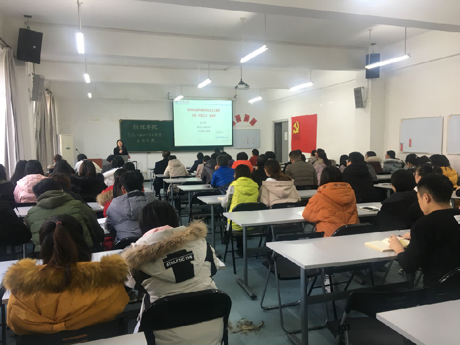 12月12日,学院党委邀请马克思主义学院安巧珍教授在理科群二号楼A308做关于“学习党的十九届四中全会精神”的专题党课,学院全体教工党员、学生党员代表70余人参加了此次党课。