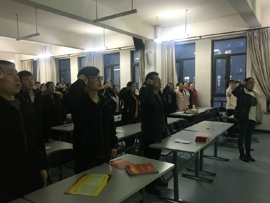 最后进行了新党员入党宣誓、老党员重温入党誓词,为新党员佩戴党徽活动。