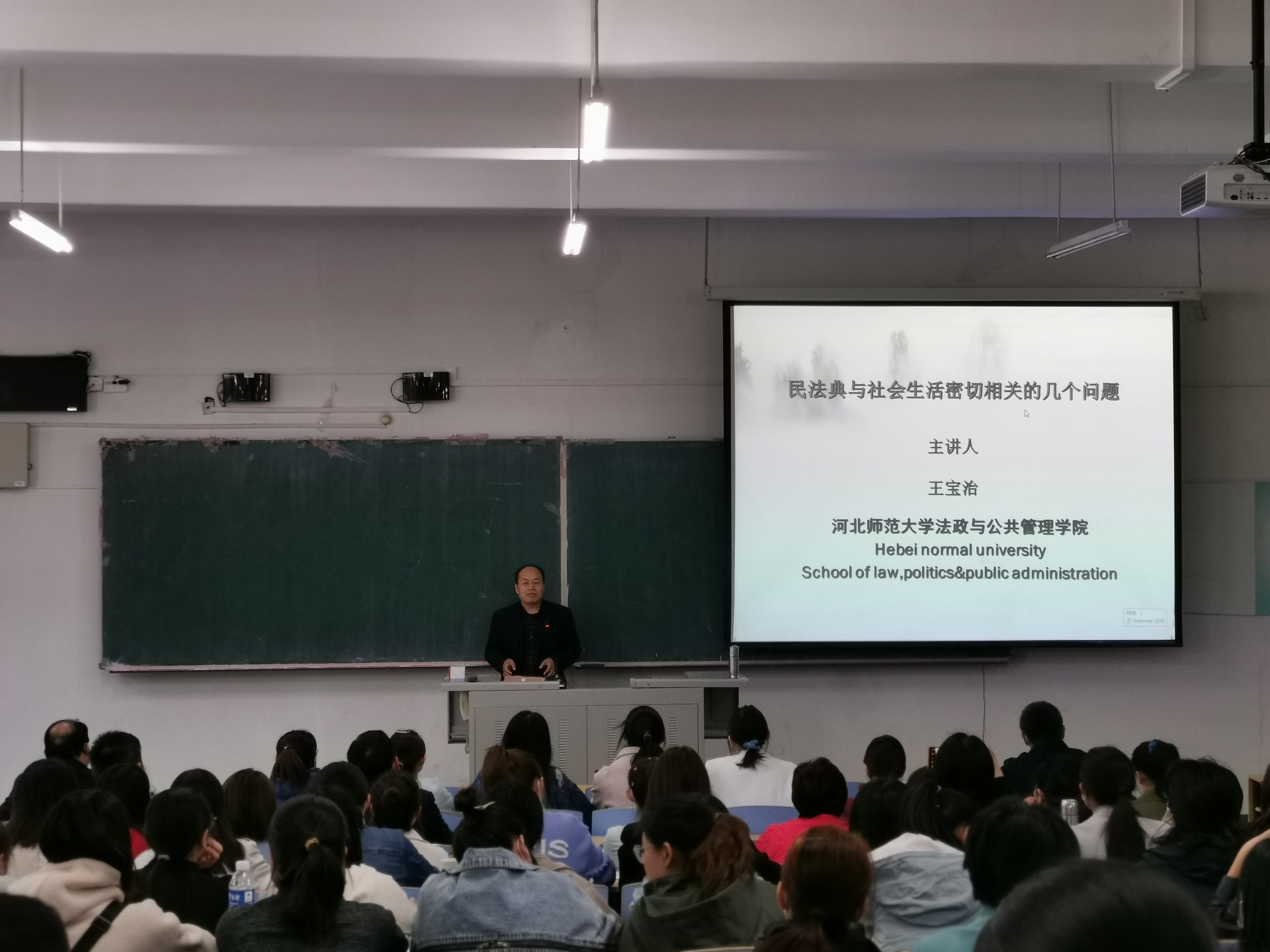 10月15日下午,后宫电影院 邀请法政与公共管理学院教授、博士生导师王宝治做“民法典与社会生活密切相关的几个问题”的专题讲座。