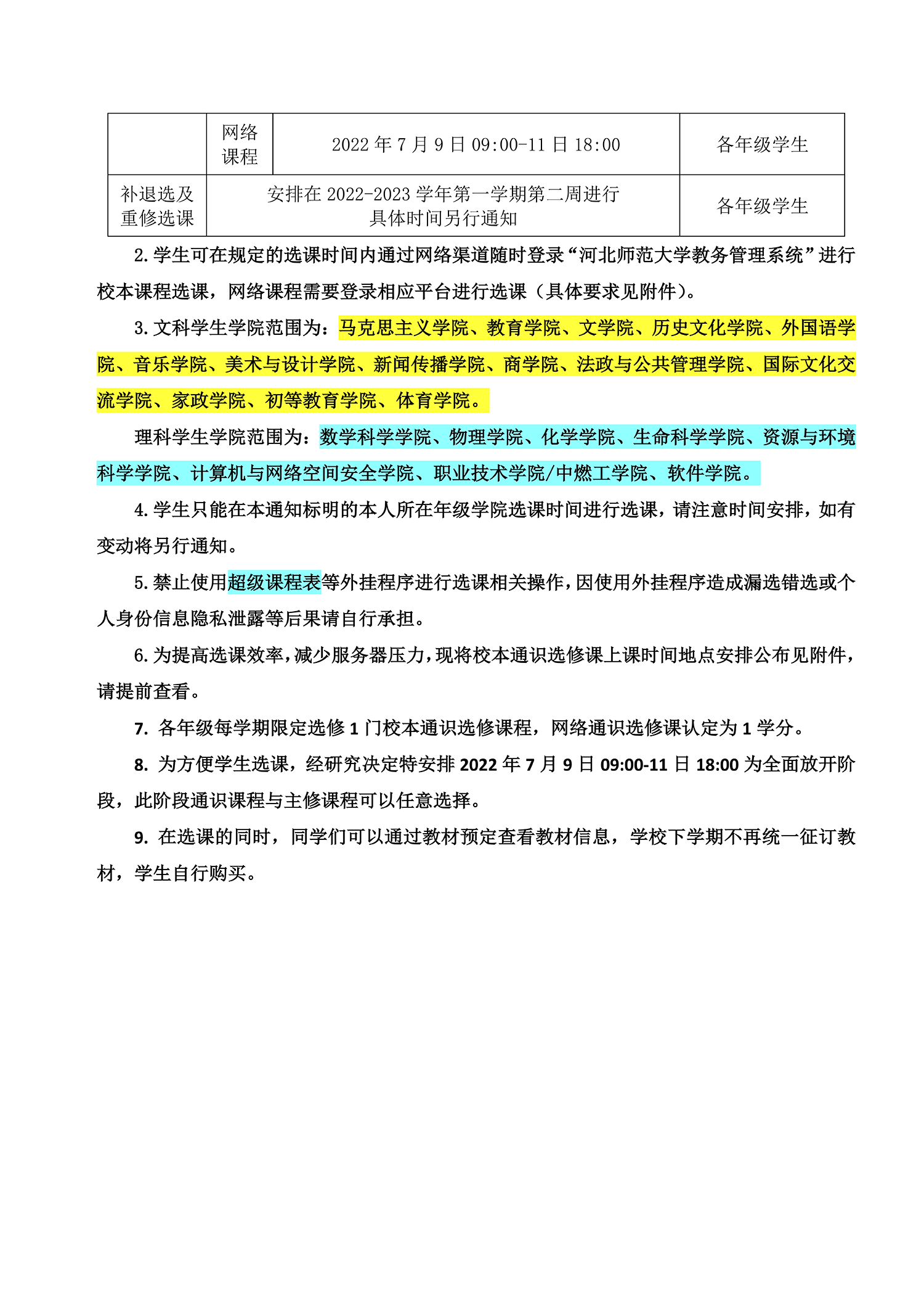2022-2023-1选课学生告知书