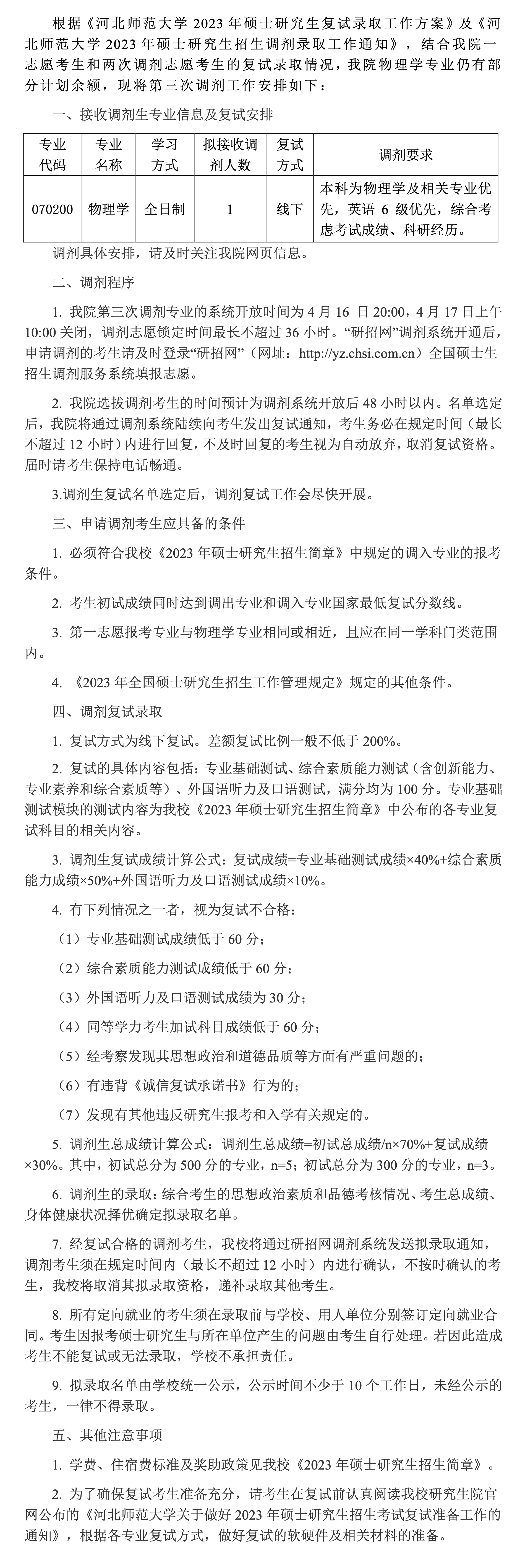 后宫电影院 2023年硕士研究生复试工作实施方案(三次调剂)