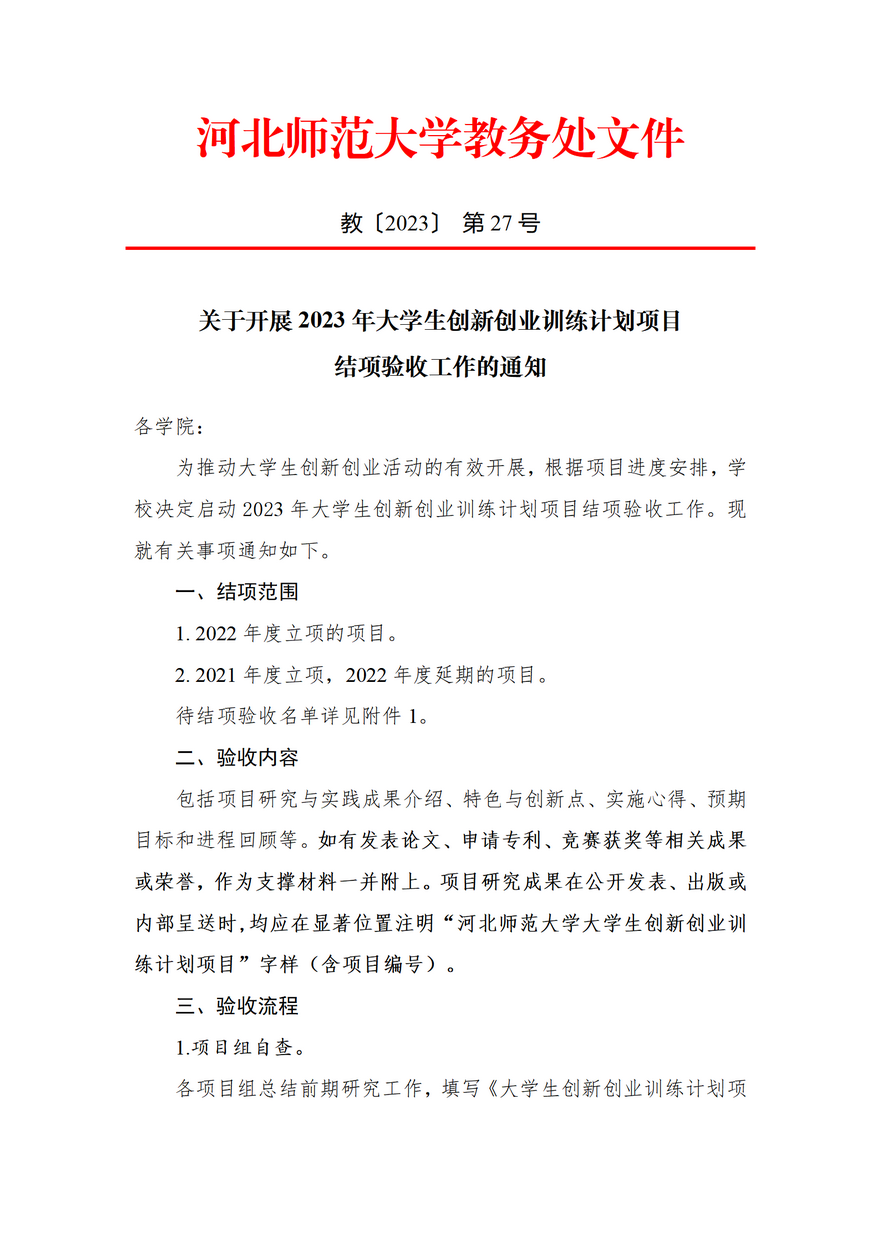 关于开展2023年大学生创新创业训练计划项目结项验收工作的通知