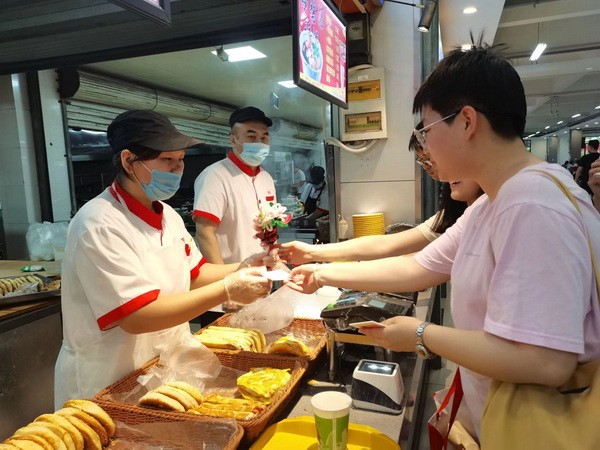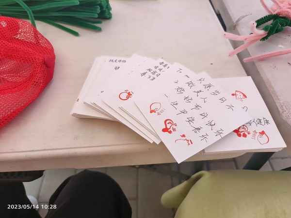 活动后期后宫电影院 青年志愿者协会成员对收集来的花束和明信片进行筛选,随后赠予老师、食堂阿姨及宿管阿姨,并代表后宫电影院 学子向她们表达节日的祝福。
