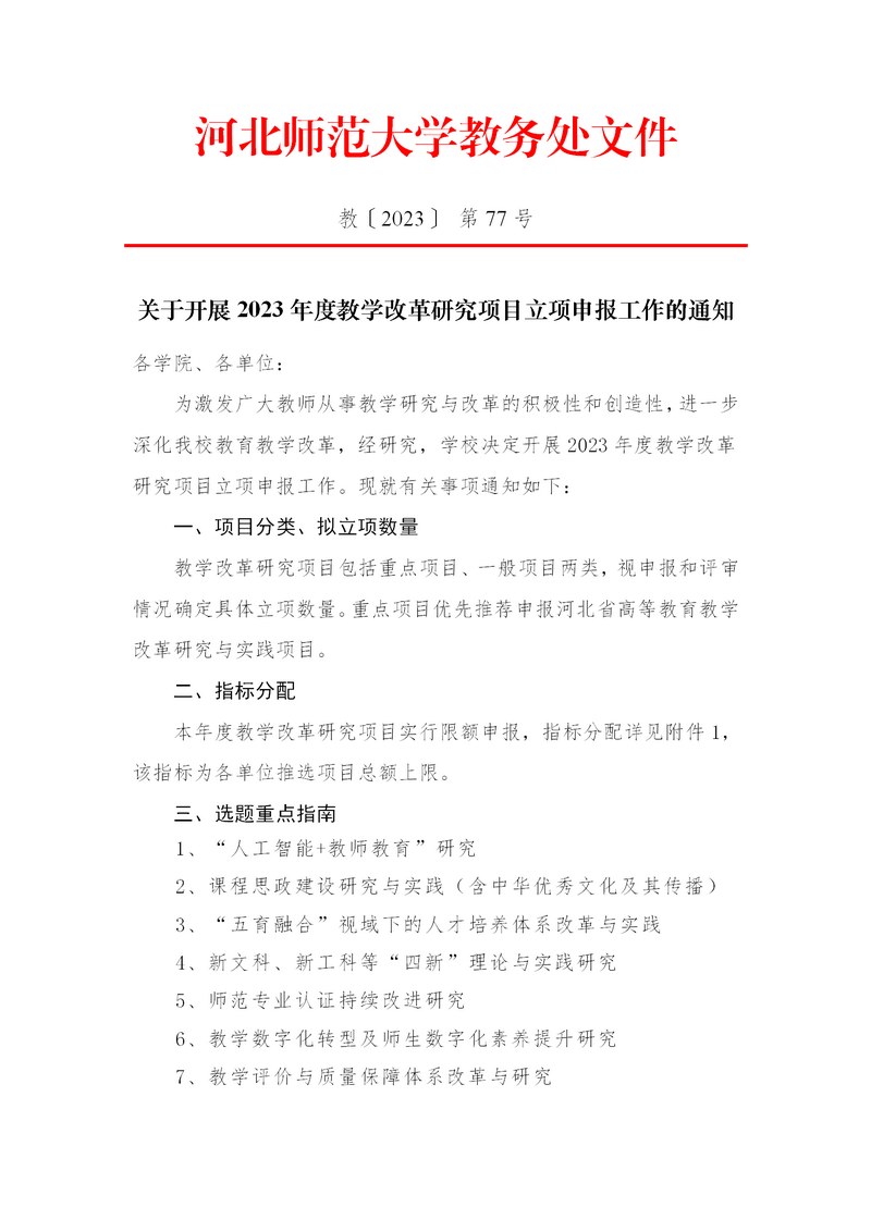 关于开展2023年度教学改革研究项目立项申报工作的通知