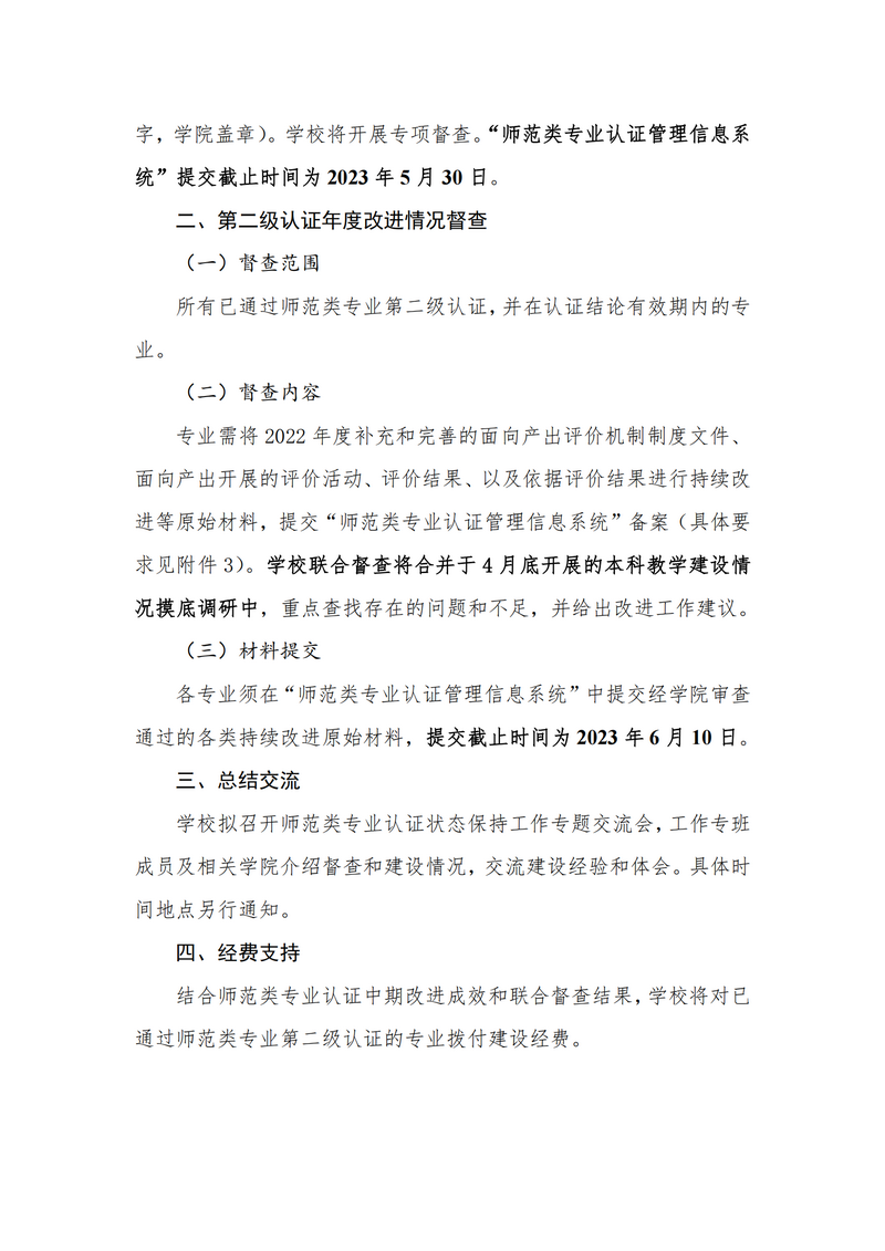 关于开展 2023 年师范类专业认证状态保持监控督查的通知