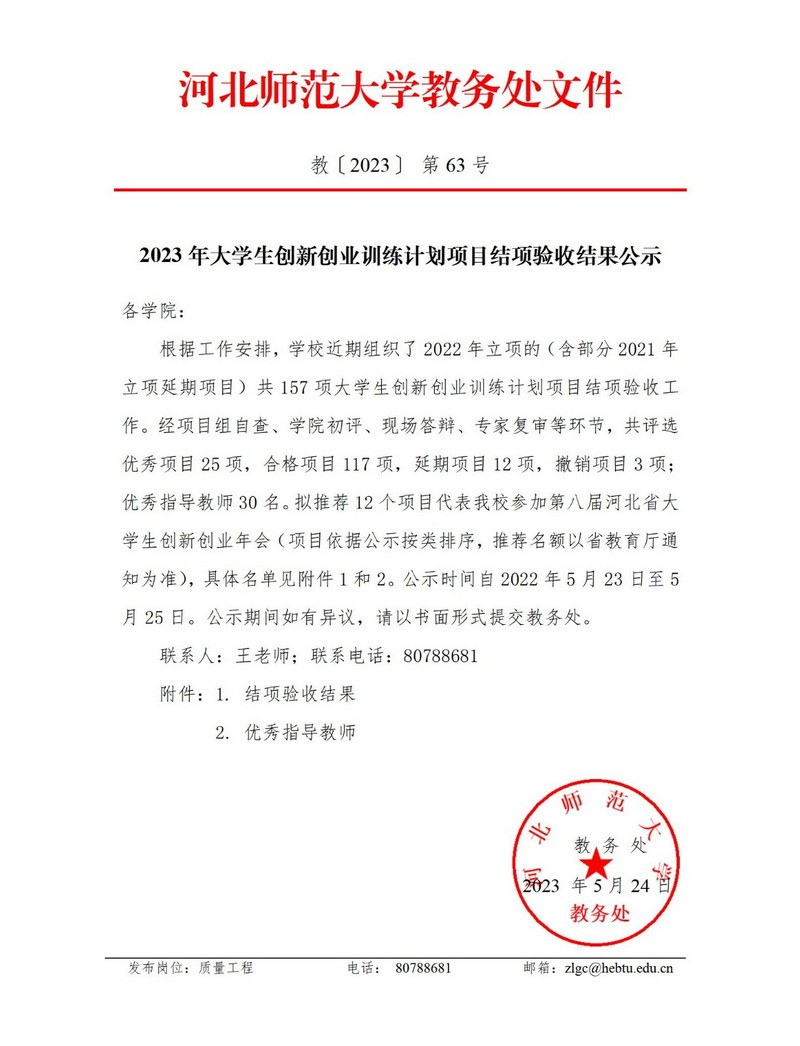2023年大学生创新创业训练计划项目结项验收结果公示