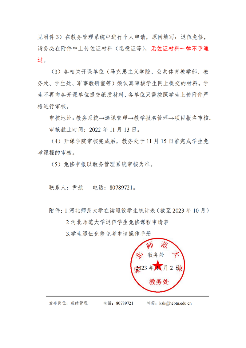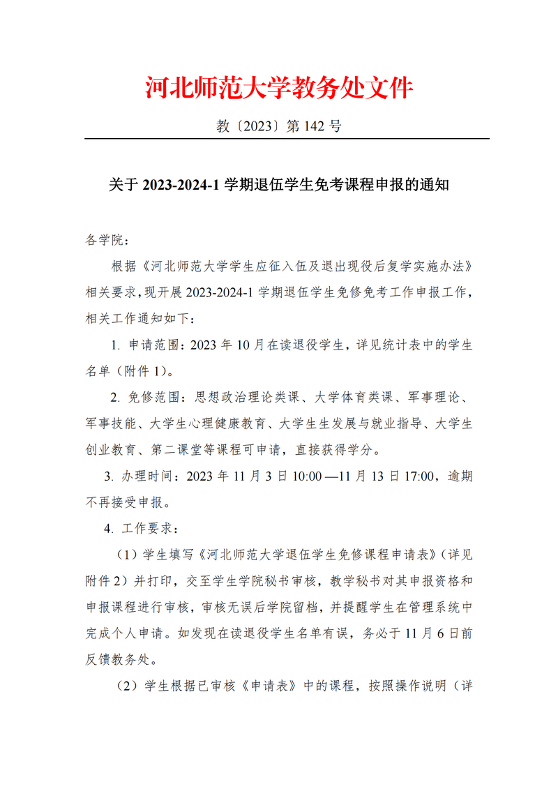 关于2023-2024-1学期退伍学生免考课程申报的通知