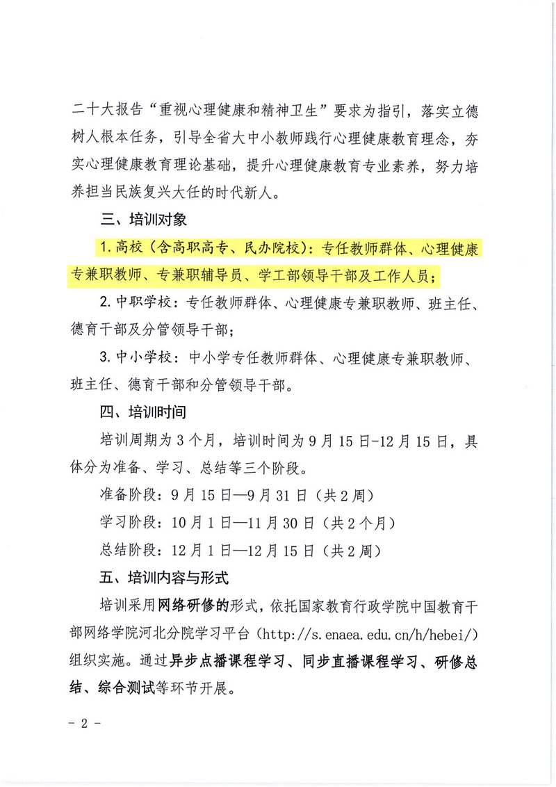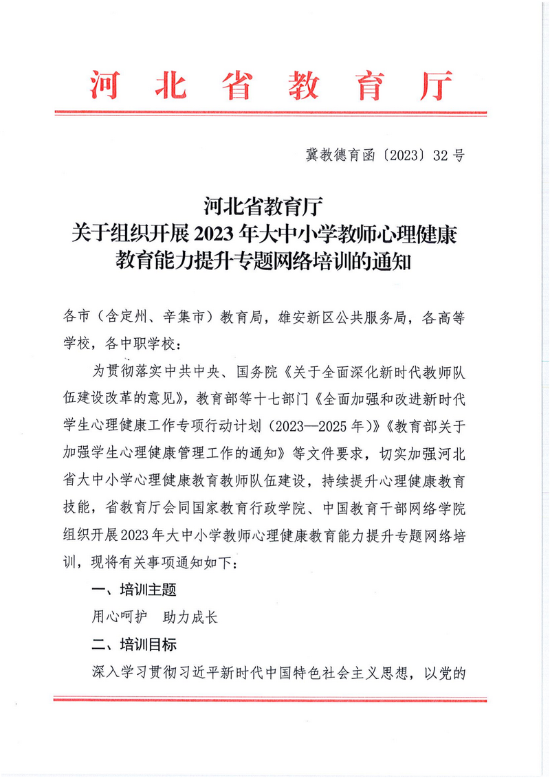 关于组织开展2023年大中小学教师心理健康教育能力提升专题网络培训的通知