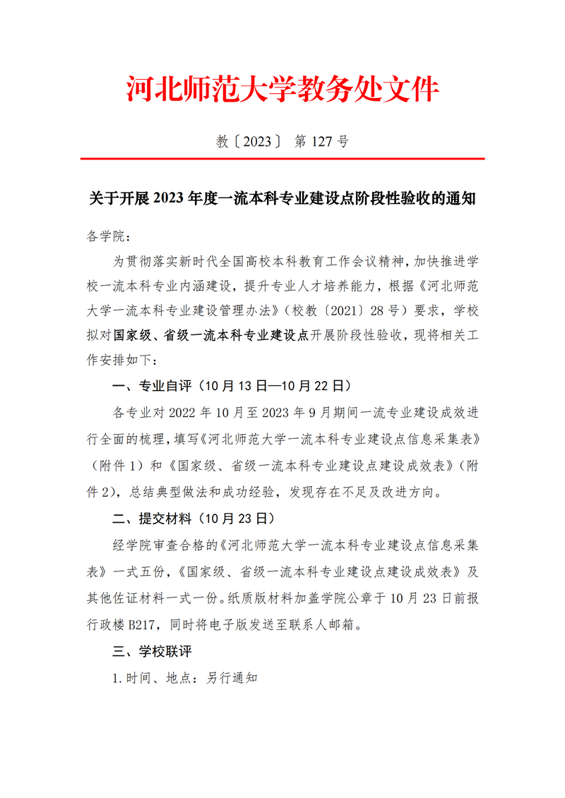 关于开展2023年度一流本科专业建设点阶段性验收的通知