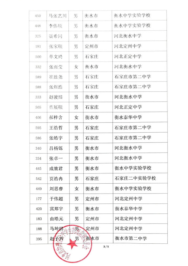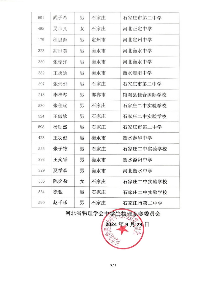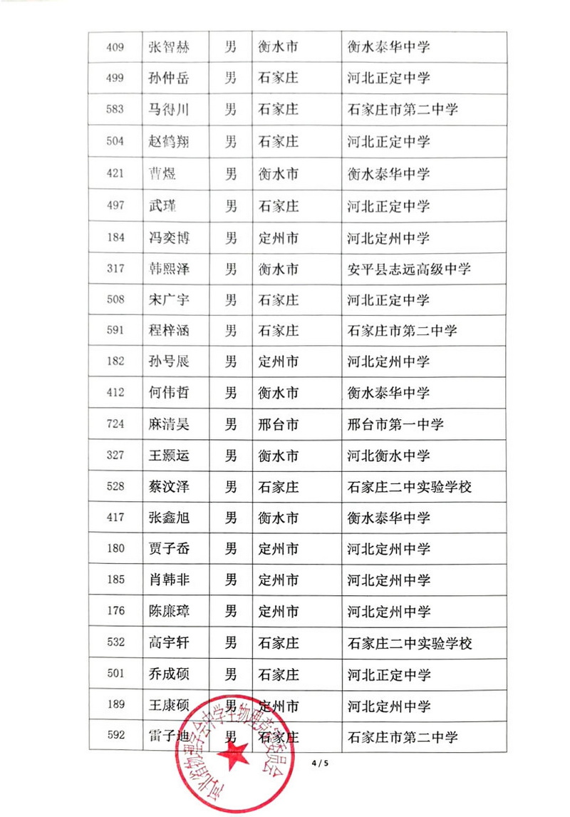 第41届全国中学生物理竞赛河北赛区获奖公告
