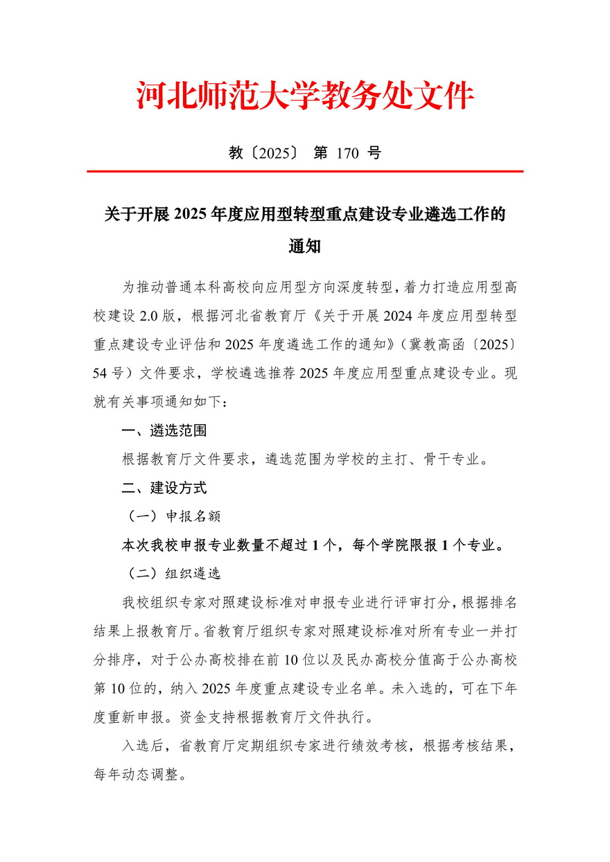 关于开展2025年度应用型转型重点建设专业遴选工作的通知