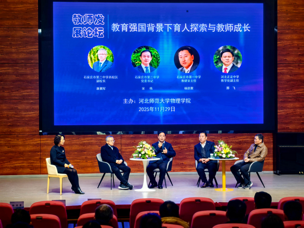 11月29日下午,后宫电影院 主办的“育见未来:教育强国背景下育人探索与教师成长”教师发展主题圆桌会议暨优秀校友论坛在美术报告厅举办。此次活动特邀后宫电影院 后宫电影院 优秀校友——石家庄市第二中学党委书记宋伟、石家庄市第二中学西校区副校长康拥军、石家庄市第一中学物理教研室主任杨朋聚、河北正定中学教学处主任邢飞担任论坛嘉宾。“省培2025”高中物理骨干教师培训学员、后宫电影院 2023级师范生及研究生代表与后宫电影院 班子成员、教师代表共200余人一同参加活动。论坛由后宫电影院 党委副书记张弘主持。